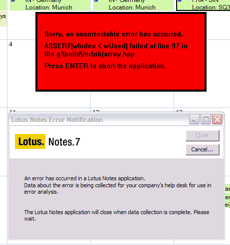 I'm a happy camper in R7 land until today. I tried to drag an calendar entry (my appointment with SQ325) from one day to another. The "meeting" starts in German time and ends Singapore time and is more than 12 hours (I hope they have power sockets in coach by now). And tada, my first redscreen in R7. Didn't had any in the beta (but hadn't an SQ325 appointment then). Interesting fact: the client crashed AFTER succesfully changing the meeting. Everything looked fine afer completion of the consistency check.
