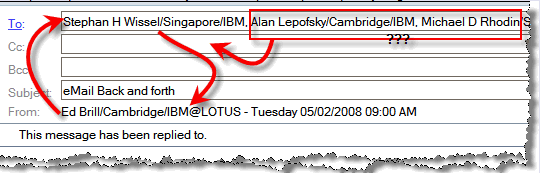 When replying to an email Notes does some address shuffling for you. As long as you have one sender and one recipient, it is quite logical. The original sender become the recipient, the recipient becomes the sender. Everybody in the cc list stays in the cc list.